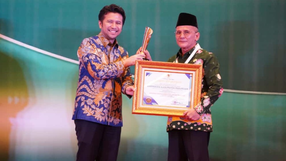 Wakil Bupati Pasuruan, Shobih Asrori, menerima piagam penghargaan dari Wakil Gubernur Jawa Timur, Emil Elistianto Dardak. “Alhamdulillah, ketiga penghargaan ini wujud komitmen dan kerja keras kami,” ujar Gus Shobih, sapaan akrabnya, seraya menyampaikan rasa terima kasih kepada semua pihak yang telah mendukung inovasi di Kabupaten Pasuruan.