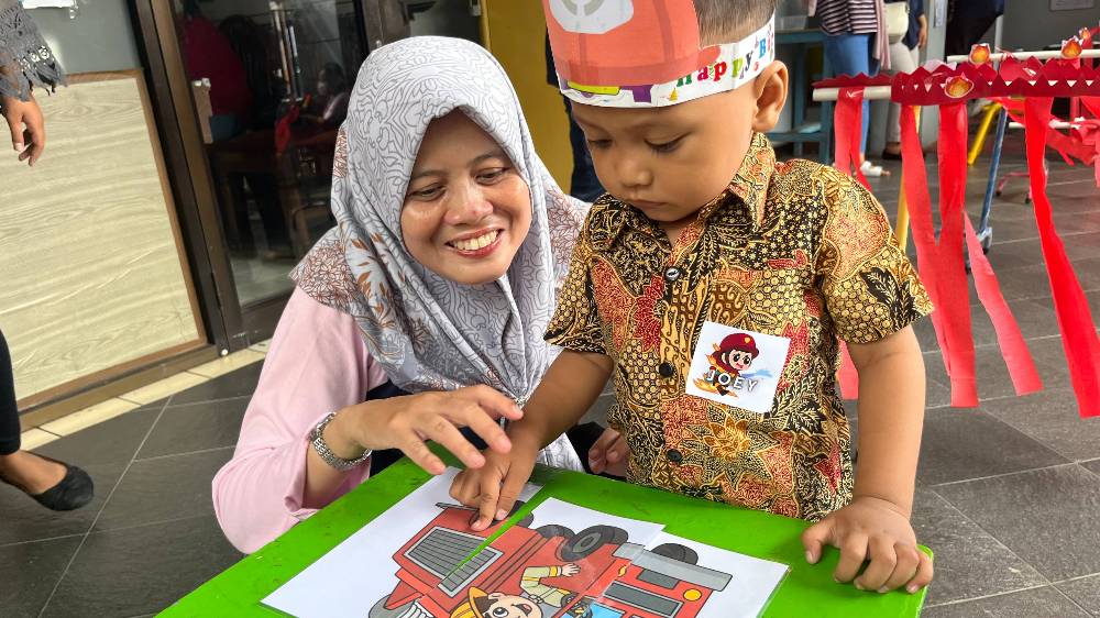 Simulasi ini tak hanya melatih keberanian, tetapi juga kemampuan anak merespons situasi darurat secara tepat. Antusiasme peserta tampak jelas saat mereka mencoba memadamkan api mini menggunakan alat peraga yang aman.